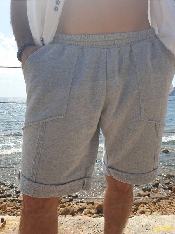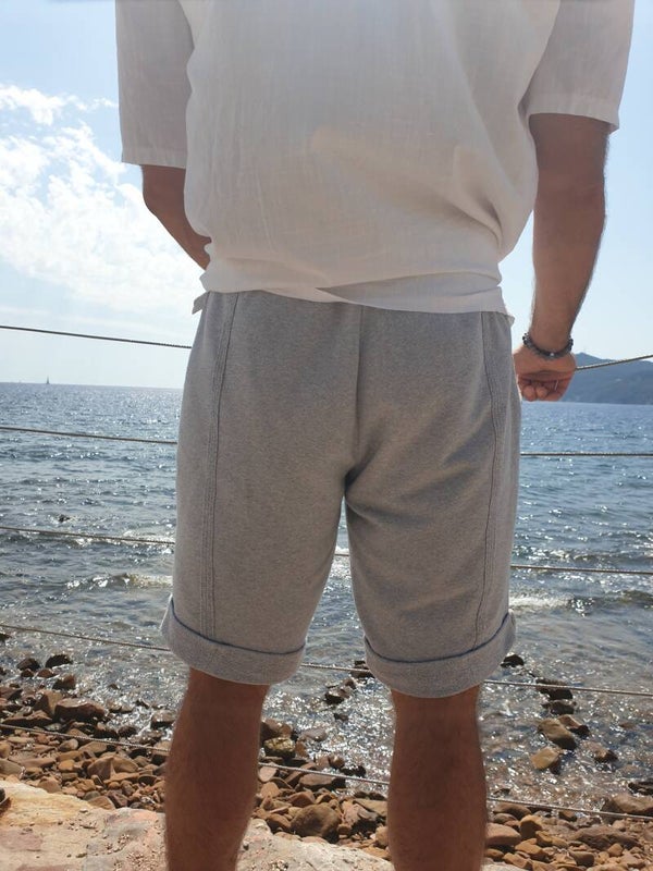 Short décontracte et très confort, avec poches italiennes en incrustation, élastique à la taille, decoupes surpiqués sur le devant et dans le dos.